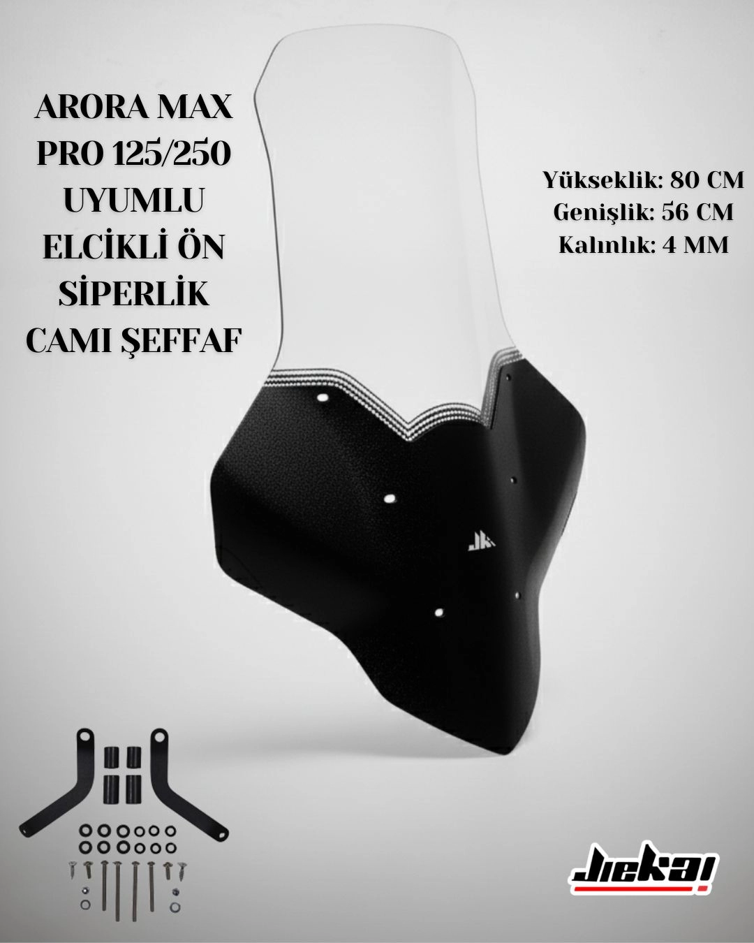 Bu ürün 1 kez satıldı ve 51 kişi baktıJİEKAİ MaxPro Uyumlu Elcikli Ön Siperlik Camı – Şeffaf
