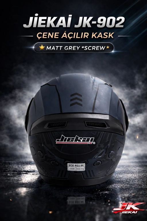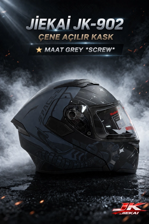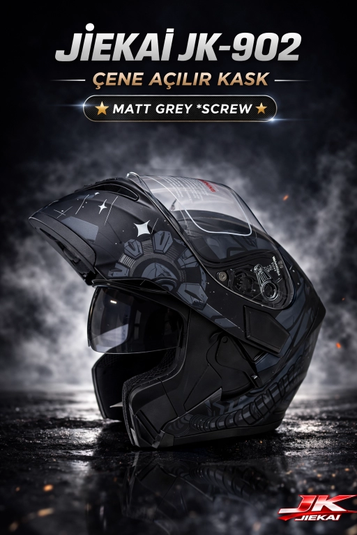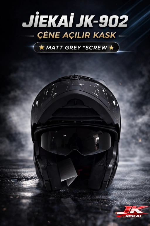 JİEKAİ JK-902 ÇENE AÇILIR KASK * ÇENE PEDLİ * MAT GREY SCREW