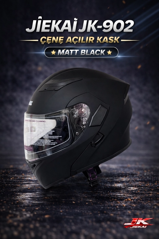 JIEKAI JK-902, motosiklet kullanıcıları için özel tasarlanmış çene açılır yapısı sayesinde hem tam kapalı kask güvenliği hem de açık kask rahatlığını sunar. Şehir içi kullanımdan uzun yol sürüşlerine kadar her koşulda yanınızda!