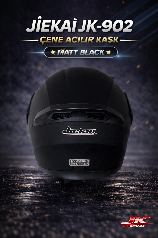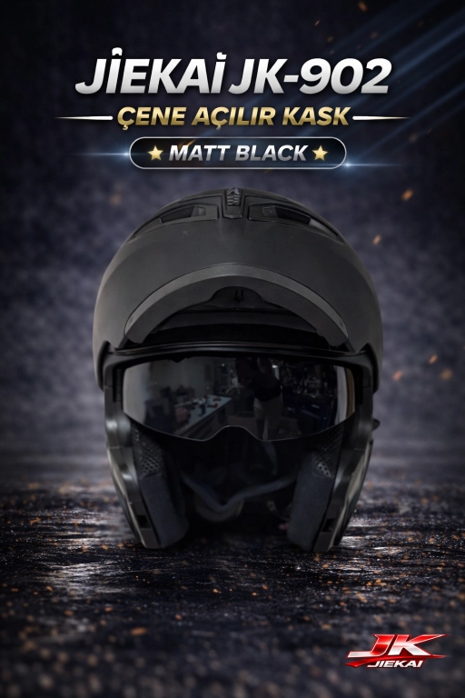 JİEKAİ JK-902 ÇENE AÇILIR KASK * ÇENE PEDLİ * MAT SİYAH