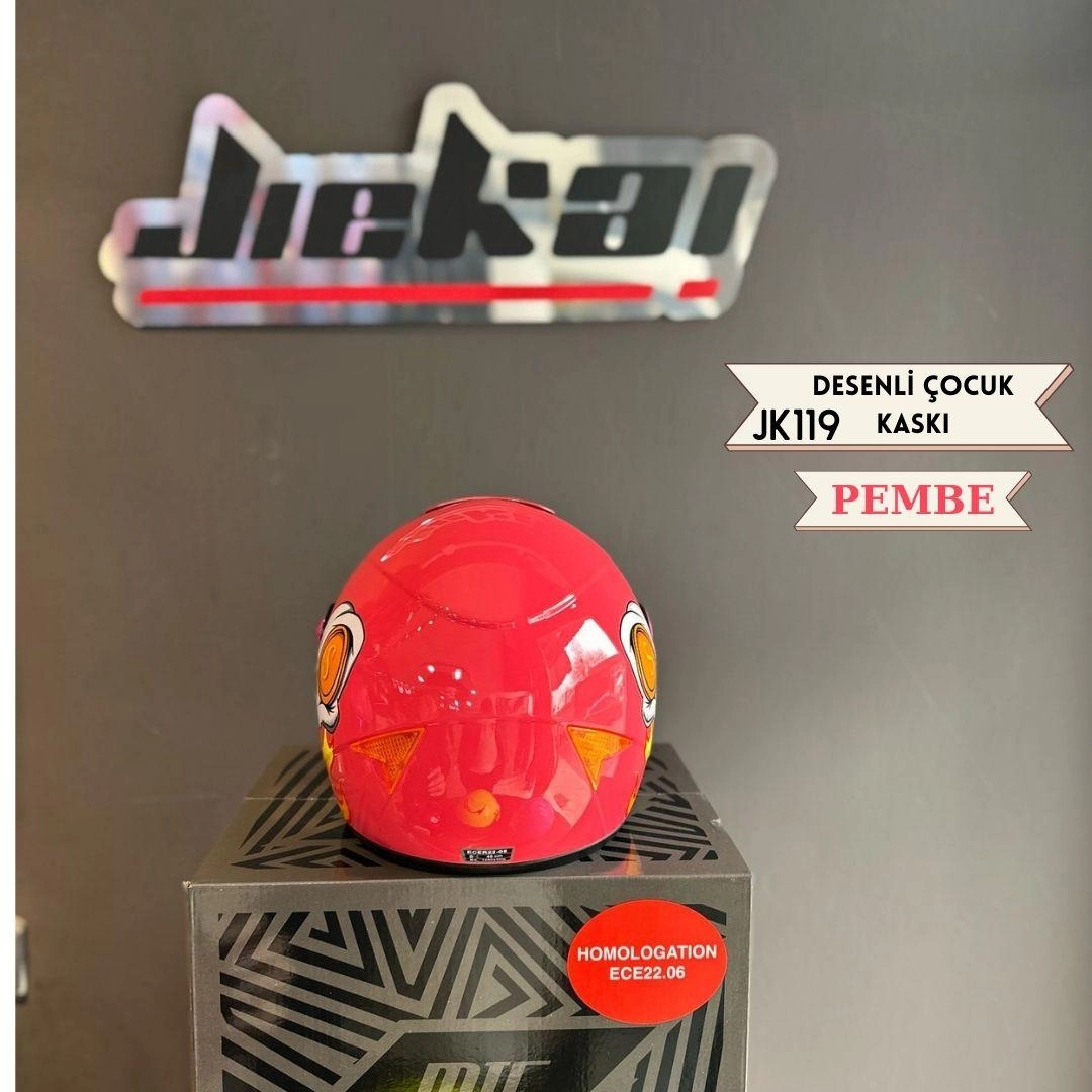 JİEKAİ JK119 Desenli Çocuk Kaskı Pembe Renk Full Face Kask
