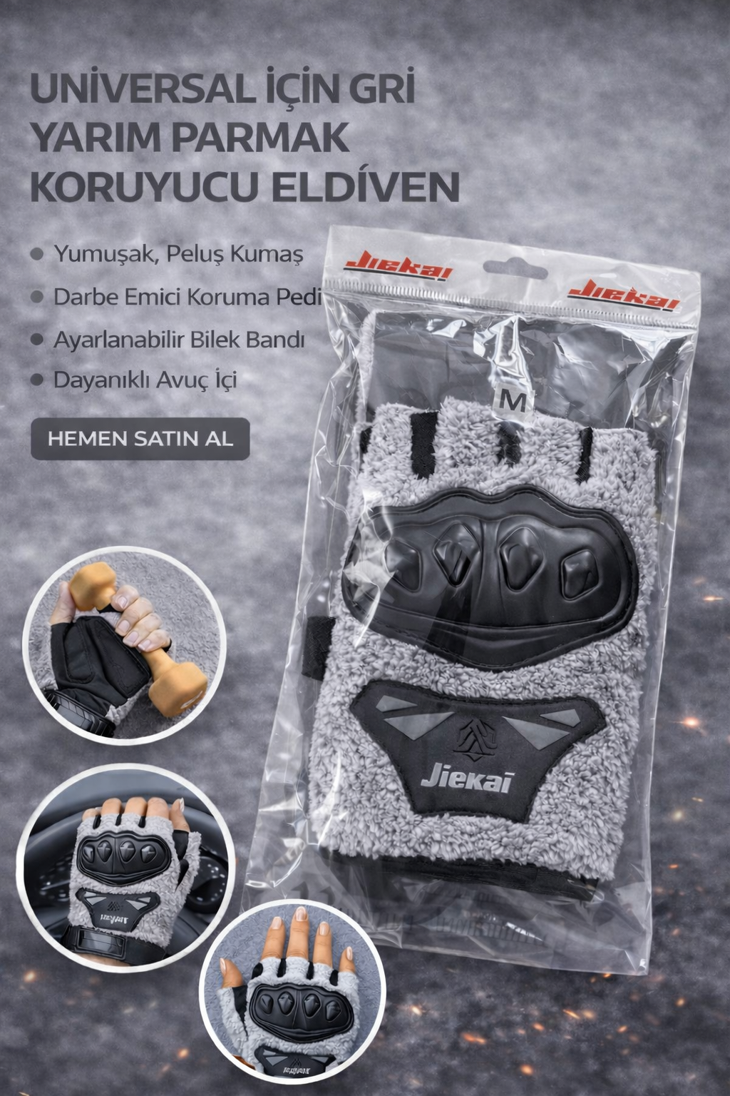 JK PELUŞLU YARIM ELDİVEN KORUMALI GRİ RENK
