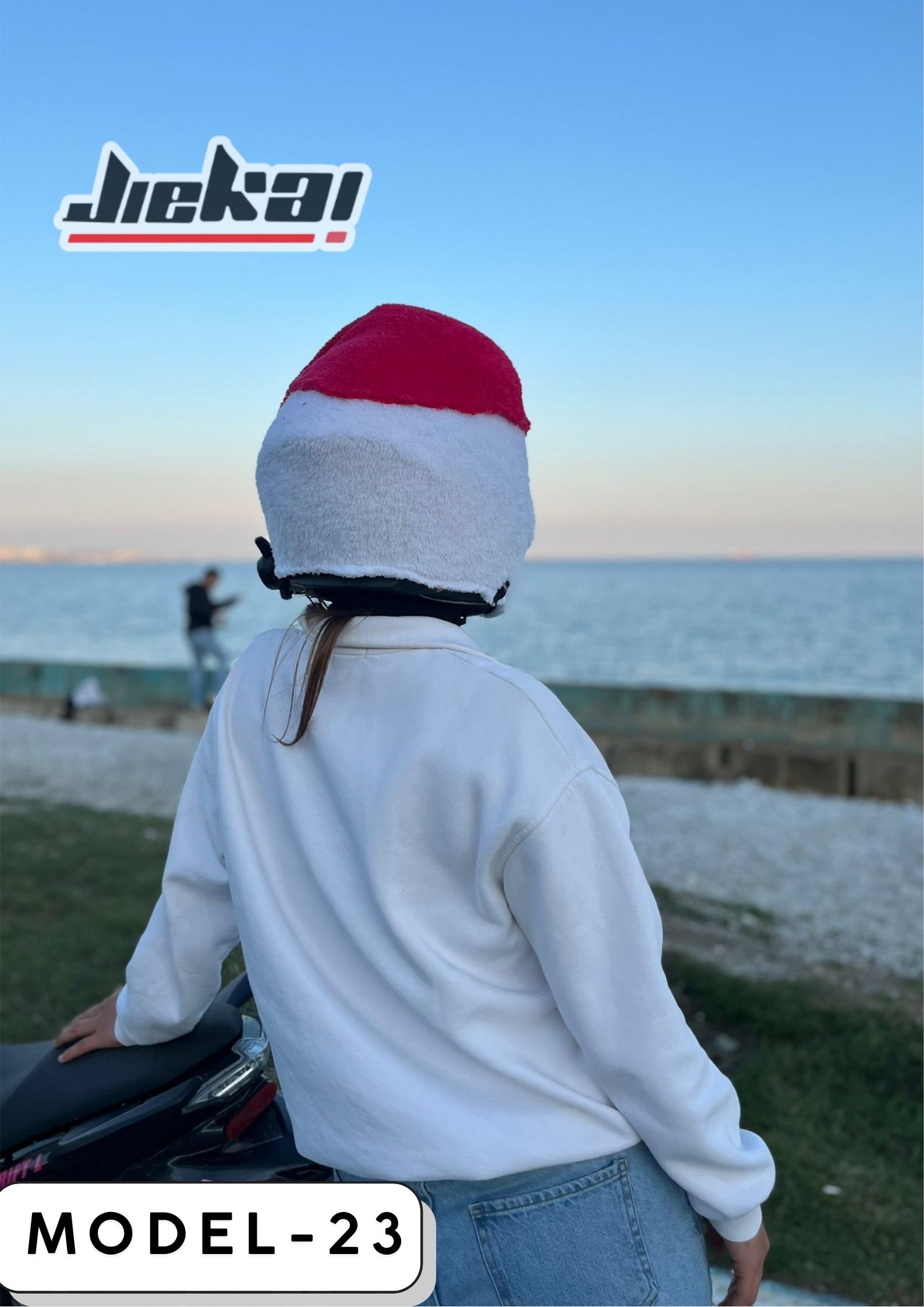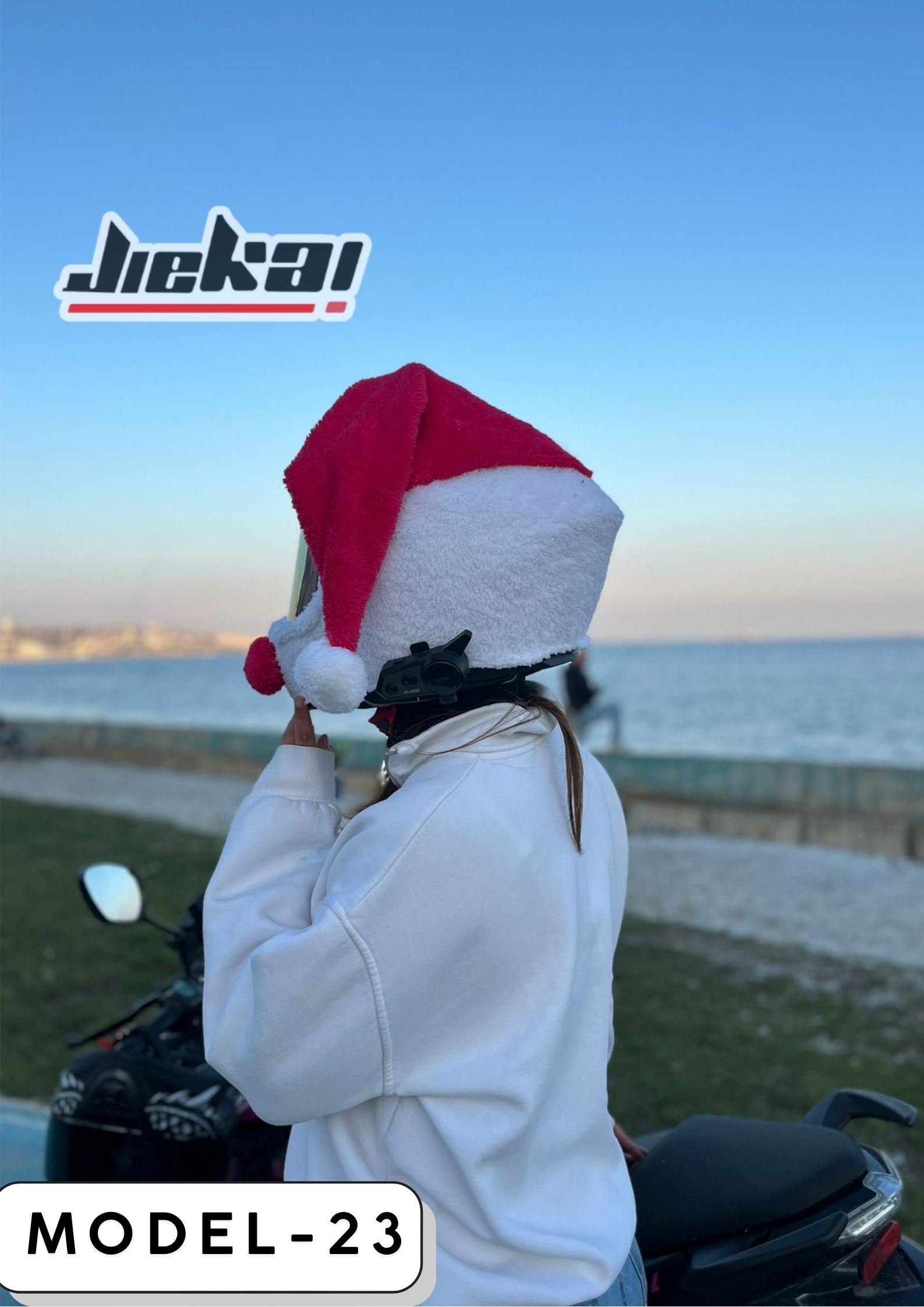 JİEKAI’nin Noel Anne Kask Peluşu ile kış aylarında hem sıcak kal hem de motoruna tatlı bir yılbaşı enerjisi kat.