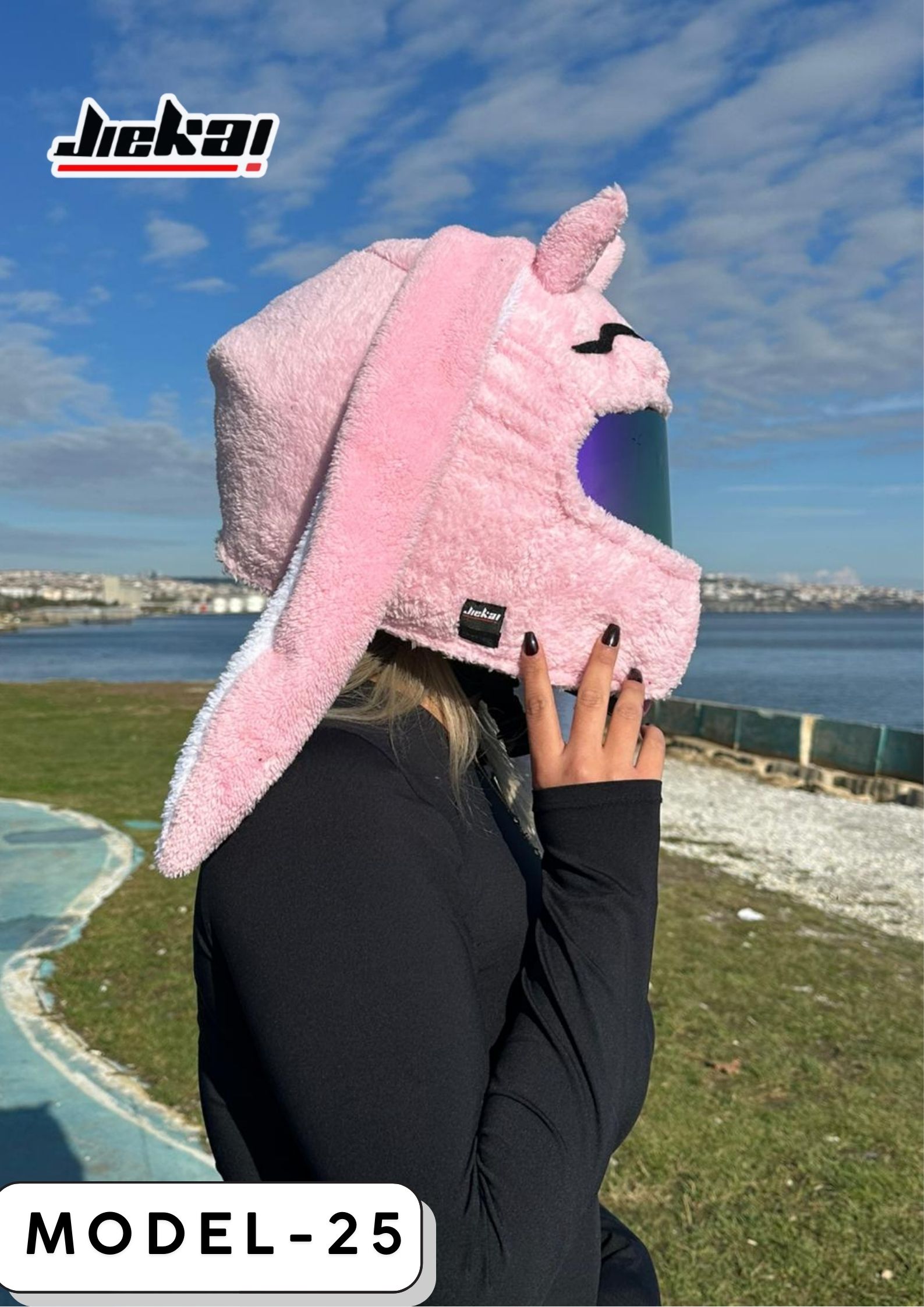 Jiekai ailesinin en yeni üyesi Pink Girl, yumuşacık dokusu, uzun kulak tasarımı ve pembe–beyaz renk geçişleriyle kaskınıza hem sevimlilik hem de dikkat çekici bir tarz kazandırıyor.