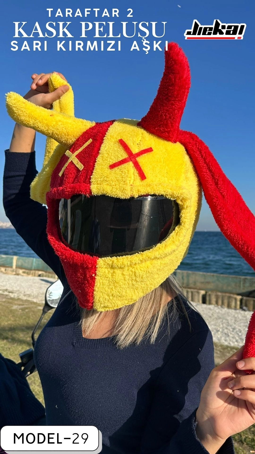 Taraftar-2 Sarı Kırmızı Kask Peluşu, JİEKAİ kalitesiyle üretilmiş, motosiklet aksesuarlarında fark yaratmak isteyen kullanıcılar için ideal bir üründür.